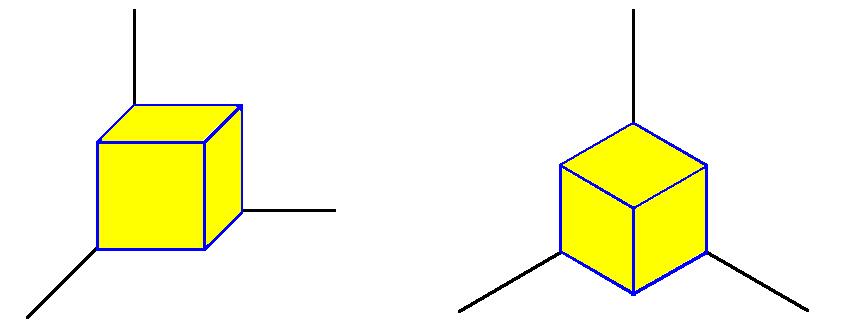 (2)斜二等轴测图Y轴方向尺寸减半(如画正方体时Y轴方向长度变成二分一)。