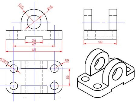 (二)7-9节课,学生可以画出简单的三视图,并且标注尺寸。实际上根据学生反映,初中阶段就已经学过三视图,基本概念已经掌握。但用C[**]D画图,对比初中的手工画图,效率提高太多了,特别是学生看到标注尺寸的快捷方便,大大提高了学习兴趣。