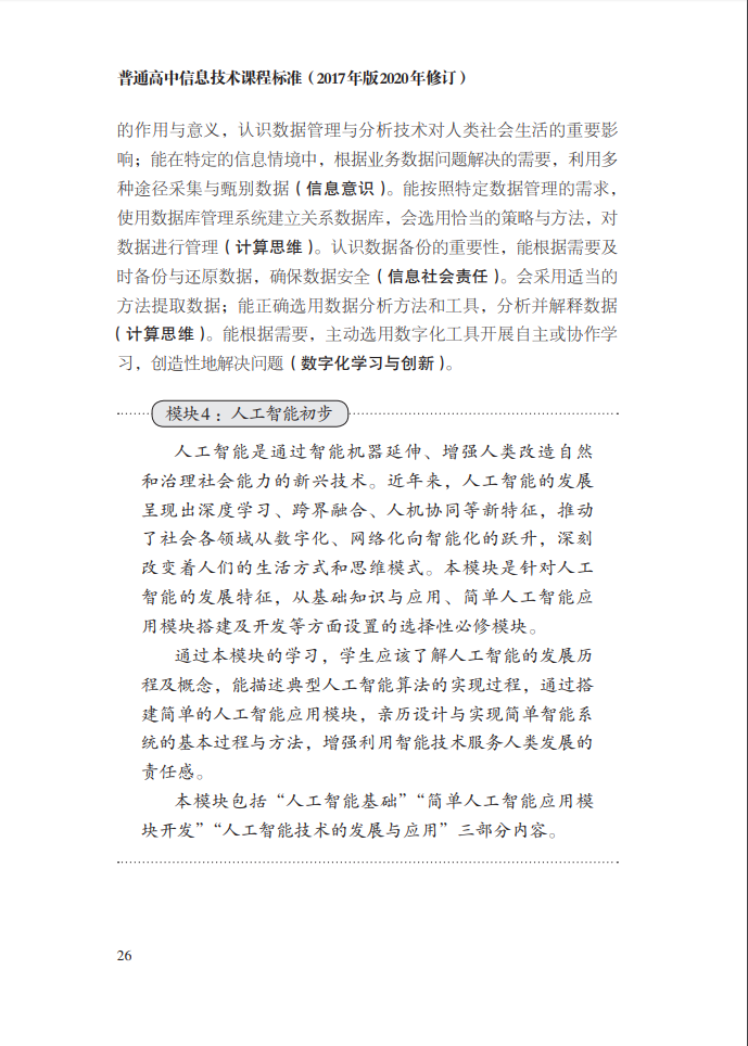 普通高中信息技术课程标准(2017年版2020年修订)