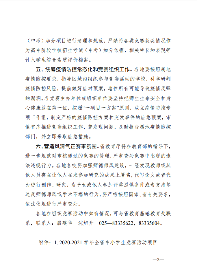 省教育厅办公室关于公布2020-2021学年中小学生竞赛活动项目的通知